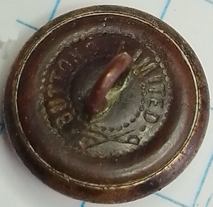 knoop verguld (1881-1912) Brits officiers uniform. Deze specifieke fabrikant “buttons ltd” is gestart in 1907 en daarom is dit hoogst waarschijnlijk een knoop uit WWI