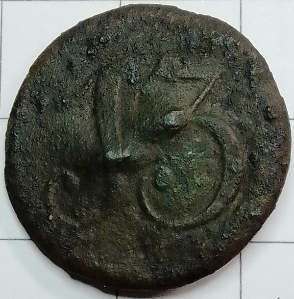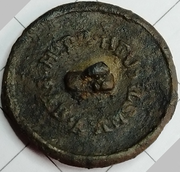 Zilvergrijze knoop waarvan wordt vermoed dat deze licht gebold is geweest. Determinatie door Rob Wolters op de FB-groep Dutch Military Buttons 1795-1815: “Deze vorm van de 1 is typerend voor Nederlandse emblemen. Deze knoop behoorde toe tot een militair van de 13e Afdeling Nationale Infanterie, of van het Bataljon Infanterie van Linie nr 13.”