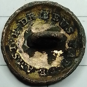 Verguld knoopje (ca17mm) van een officier van het kort bestaan hebbende Bataljon Oost-Indische Infanterie Inn- und Kniphausen Nr. 37 uit 1815 (infanterie, buitenlandse corpsen in dienst van het koninkrijk). Determinatie Rob Wolters