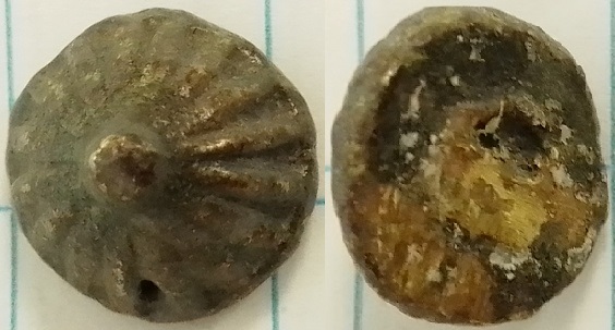 Zie Kennemerland in metaalvondsten pag 205 object 22.5.15 voor een gietoogje in kegelvorm met hetzelfde radmotief