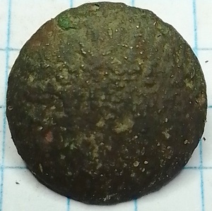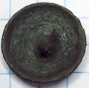 Knoop kommetje 15mm met aan de binnenzijde nog lichtjes te zien een soort laurier tak.