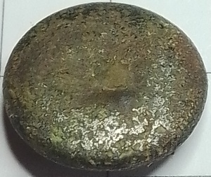Kwartbolle verzilverde holle knoop met ontluchtingsgat. Op de achterkant een gesoldeerd oog