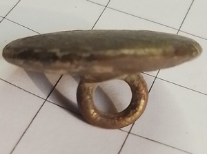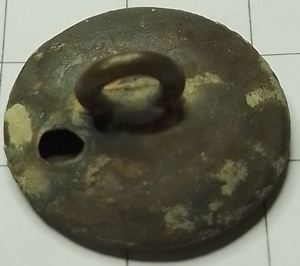 Kwartbolle holle knoop met ontluchtingsgat. Op de achterkant een gesoldeerd oog