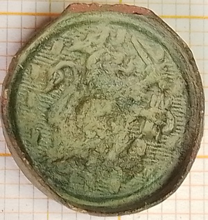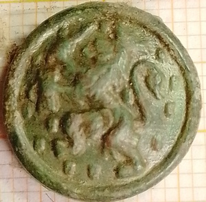 Hierop staat het verkorte rijkswapen, een naar links klauwende gekroonde leeuw (generaliteitsleeuw) met in de ene klauw 7 pijlen (de oorspronkelijke 7 provinciën) en in de ander een geheven zwaard. De achtergrond is horizontaal met strepen gearceerd en bevat kleine blokjes.
