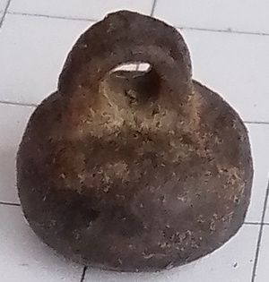 Deze knoop staat beschreven in Read pag 36 afb 113 als spherical, solid, undecorated, a rectangular-section rounded shank (1500-1600)