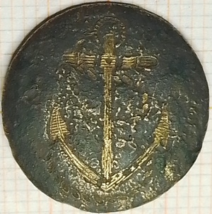 Knoop 18mm van de Nederlandse marine (dus zonder ankertouw). Dit type knoop werden zowel in Nederland als het buitenland (vanwege de betere kwaliteit) gemaakt. Volgens PAN is de knoop te dateren van 1813-1827.