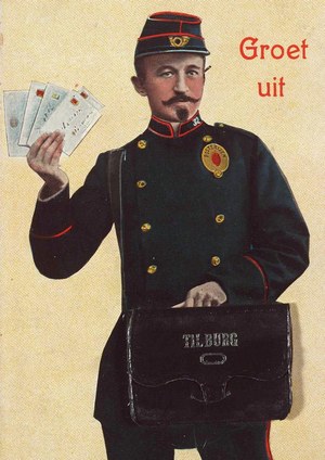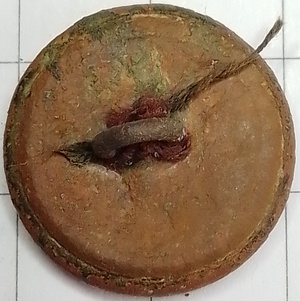 Knoop van de Nederlandse posterijen met een afbeelding van een posthoorn. Datering 1898-1928 zie knopen-nederlandse-post