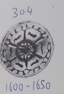 Wambuisknoop van nikkel die Baart als volgt heeft omschreven: “Een variant van de roos met dubbele blad-krans van tweemaal zes bladeren (afb. 304) komt voor aan het enig behouden kledingstuk met metalen knopen in Nederland. Het is de lederen kolder, een wambuis, dat Hugo de Groot in 1621, bij zijn vlucht in de boekenkist uit het slot Loevestein droeg. Als metselaar verkleed zou hij dit wambuis gedragen hebben.”