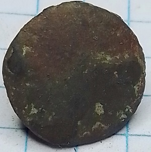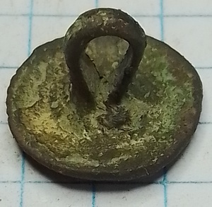 Eenvoudige platte knoop 16mm. Op de achterzijde een dikke koperen lus.