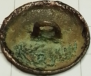knoop plat met randje 26mm Author: Mark Ouwerkerk Published Date: 6 juni 2025 Kop heeft randje waarschijnlijk om hem meer stevigheid te geven. Categorieën: CAT100, gewalste plaat (ca 1730-1800) Gerelateerde producten knoop kommetje met oog op stok Lees verder platte knoop met gesoldeerd oog Lees verder knoop fleuron – leliekruis Lees verder knoop tombak concaaf met meegegoten oog Lees verder