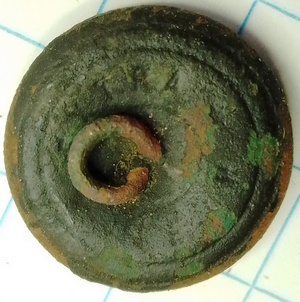 Knoop van ambtenaar (o.a. de Nederlandse post) of landmacht met een afbeelding van een gekroonde hoofdletter W (kroon plus de letter W van Willem of Wilhelmina)