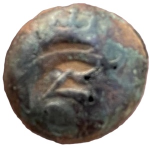 Knoop met het monogram van Christiaan V koning van Denemarken & Noorwegen (1670-1699). Deze samengestelde gesoldeerde knoop is gevonden in Nederland.