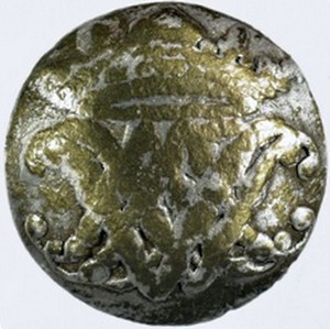 Regimentsknoop uit de collectie van het Noordelijk Archeologisch Depot (NAD) gevonden in Coevorden. Volgens de beschrijving is dit een WM monogram.