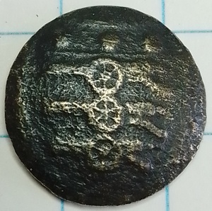 Hierop is een schild te zien met hierin 3 kanonnen boven elkaar, naar links gericht. Boven de kanonnen 3 balletjes die 3 kanonskogels moeten voorstellen. Dit schild wordt “the board of ordnance” genoemd: het munitieschild. Deze werd gebruikt in de periode ca1790-ca1802