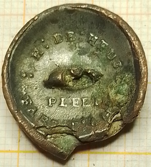 Voorheen verzilverde (= pleet) bolle knoop van de schutterij datering 1813-1832