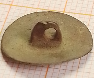 Platte knoop met hierop een klein spiraalvormig object en hier omheen 2 concentrische cirkels