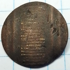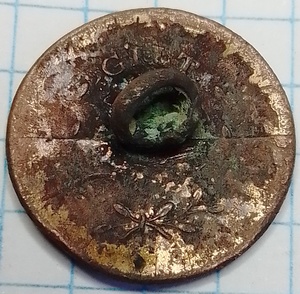 Vergulde knoop met een streepjespatroon. Dit soort knopen werden ook in de Dandy periode gemaakt en zijn minder groot maar wel erg luxueus.