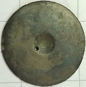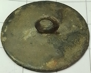 Dandy knoop van tombak met hierin een kuiltje. Op de achterkant een gesoldeerd oogje