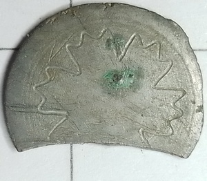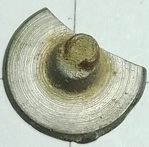 Knoopje (afgebroken) van tombak, 14mm meteen blad motief.