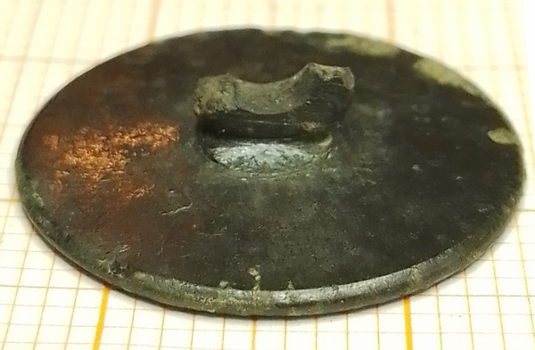 Tombak knoop 21mm met zilveren uitstraling. Zilverkleurig met een vast (meegegoten) oog.