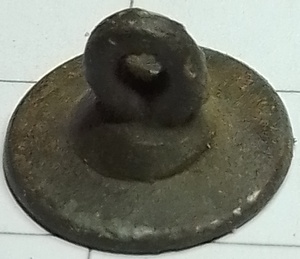 Tombak knoop 16mm met zilveren uitstraling. Zilverkleurig met een kegelbevestiging en messing oogje.