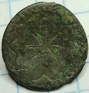 Tombakknoop versierd van 15mm met op de achterzijde een kegelbevestiging