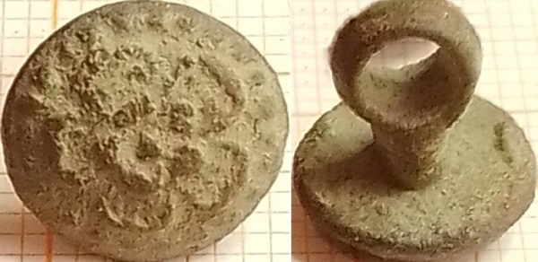 Wambuisknoopje gegoten met hierop een Tudorroosje.