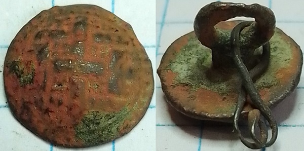 Aan het oogje zit nog een bevestigingsmechanisme waarmee de knoop kon worden vastgezet.