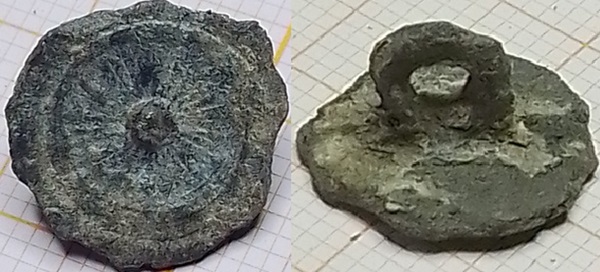 knoop wiel Author: Mark Ouwerkerk Published Date: 4 maart 2025 Platte tinnen knoop met lusoog waar een wiel met spaken op staat. Categorieën: CAT070, plat lood-tin (1600-1815) Gerelateerde producten knoop tin cirkel met punt Lees verder knoop tin kegel met bolletje Lees verder knoop achthoek versierd Lees verder knoop kaal plat 15mm loodtin (ca1685-1710) Lees verder
