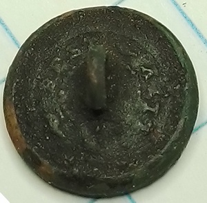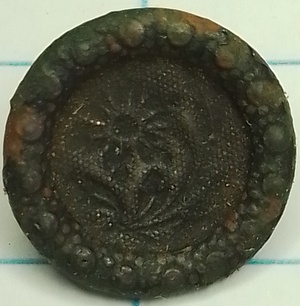 Klein knoopje met hierop een bloem. Dit is een picture button. Gezien het opschrift op de achterkant eind 18de begin 19de eeuw.