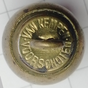 kogelknoop tweedelig gestanst, messing met ietwat vlakke basis van Van Kempen uit Voorschoten. In advertenties werd Van Kempen als merknaam gebruikt in de periode 1875-1916