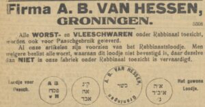 vz: “van Hessen” en “כשר ” (Deze Joodse letters Av Bet Din staan voor rabbinical court, de wetten van de staat Israel (kosher)