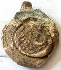 Dit loodje is ondanks de slechte leesbaarheid gedetermineerd als lakenlood ‘Leyden Geblaewt’ uit de 17de eeuw