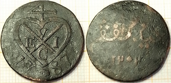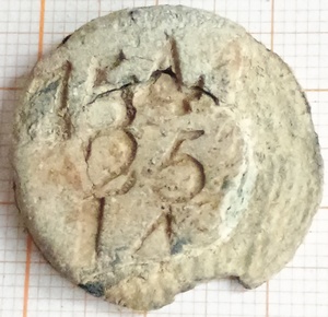 Waarschijnlijk een deelbewerkerslood uit de 17de eeuw van de E.I.C. (East India Company). Deze wijkt af van de 4 bekende EAC loden.