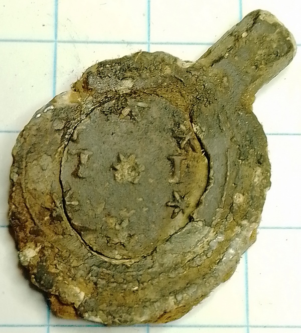 vz: “I” ster “I” of “I” ster “L” met hier omheen in een cirkel 6 sterren. Dit zou het wapen van Ferwerderadeel kunnen zijn.