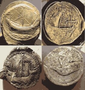 In de collectie van de Lakenhal bevindt zich een lakenstempel met hierop een schip/schepen