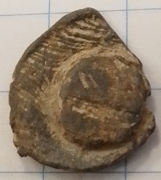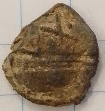 Waarschijnlijk een lakenlood. Afbeelding lijkt op een schip met masten.