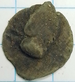 Boven het schild lijkt “49” te staan en er onder “29”. Links naast het schild wellicht een zwaard