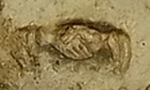 textiellood voor zijde van Alhumbert. Deze handelaar was actief in 1766 in Lyon. De schuddende handen, op de keerzijde, stonden symbool voor de Franse revolutie (1789-1799) en refereerde aan vrijheid, gelijkheid en broederschap.