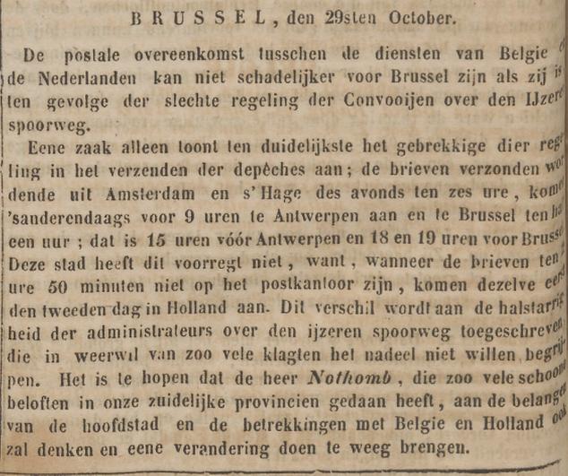 Vanaf 1839 rijden er treinen in Nederland. Al snel worden postzakken vol brieven met de trein vervoerd. Later komen er zelfs aparte posttreinwagons. Deze wagons zijn zo ingericht, dat tijdens het rijden van de trein gewerkt kan worden aan het sorteren van de post. De posttreinen zitten gewoon voor of achter de wagons met reizigers.