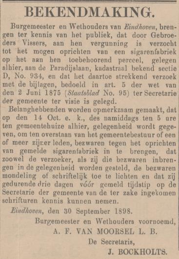 zegellood van de sigarenfabriek van gebroeders Vissers uit Eindhoven. Datering eind 19de begin 20ste eeuw