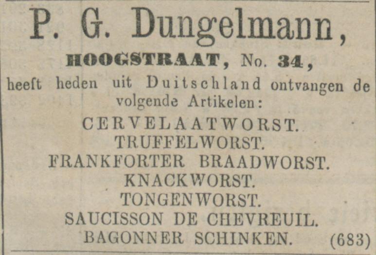 lood waarschijnlijk van de firma P.G. Dungelmann uit Den Haag. Deze verkocht o.a. rookworst.