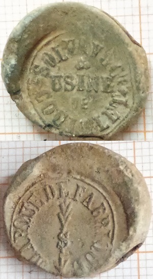 zegellood van de chemische fabriek Usine van Solvay in Couillet (België). Dit bedrijf maakte soda. Datering 1877-begin 20ste eeuw