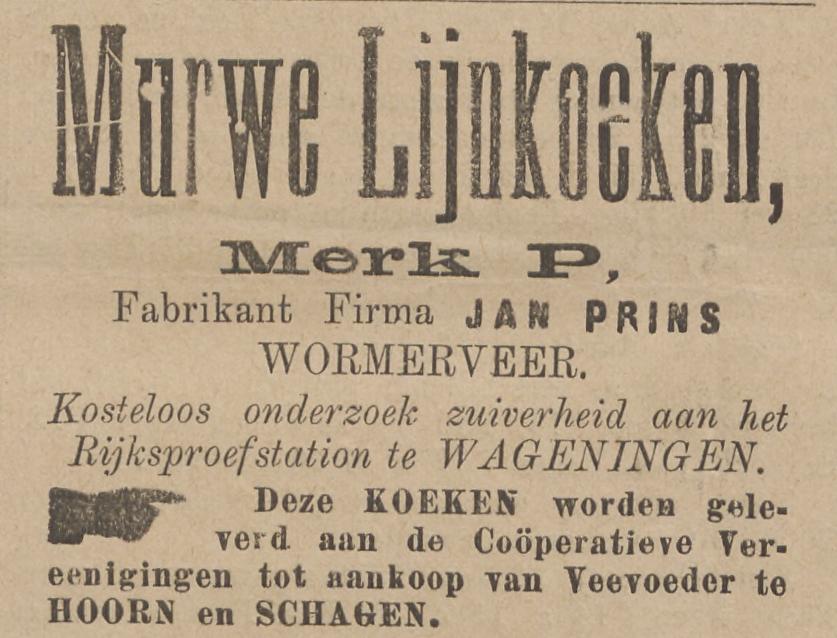 Jan Prins uit Wormerveer was koopman en fabrikant van o.a. lijnzaadkoeken. De firma Jan Prins betond ca 1859-1922