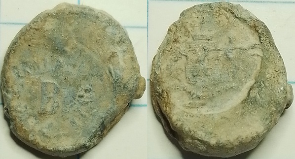 Lood met hierop het uitgebreide rijkswapen (inclusief leeuwen die het rijkswapen vasthouden) die door bedrijven wordt gevoerd die het koninklijke status hebben.