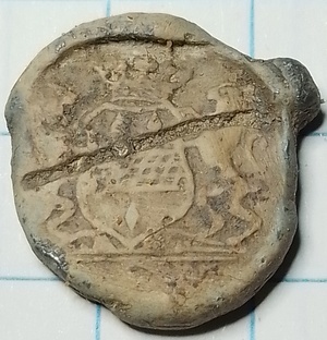 Dit loodje bevindt zich in een verzameling met andere loodjes van militaire magazijnen. Allex Kussendrager merkte het stempel “MW” op van Magazijn Woerden in een militaire muts. Dit stempel is vergelijkbaar met de letters op dit loodje. Het wapen van Woerden maakt de determinatie rond.