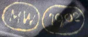 Dit loodje bevindt zich in een verzameling met andere loodjes van militaire magazijnen. Allex Kussendrager merkte het stempel “MW” op van Magazijn Woerden in een militaire muts. Dit stempel is vergelijkbaar met de letters op dit loodje. Het wapen van Woerden maakt de determinatie rond.