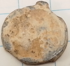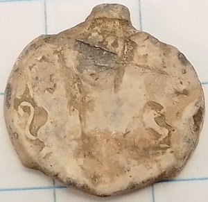 Dit loodje bevindt zich in een verzameling met andere loodjes van militaire magazijnen. Allex Kussendrager merkte het stempel “MW” op van Magazijn Woerden in een militaire muts. Dit stempel is vergelijkbaar met de letters op dit loodje. Het wapen van Woerden maakt de determinatie rond.