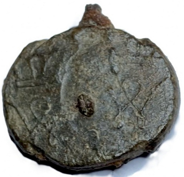 Loodje gevonden door Dirk Anholts op het terrein van de voormalige Willem III kazerne te Amersfoort. Het loodje is ovaal en op het breedste punt 22 mm. Op het loodje lijkt twee maal een rond stempel over elkaar gezet te zijn. Het is een stempel van een gekroonde W, hoogstwaarschijnlijk het initiaal van Willem III. Deze kazerne is opgeleverd in 1883 dus het loodje zal dateren eind 19de begin 20ste eeuw.
