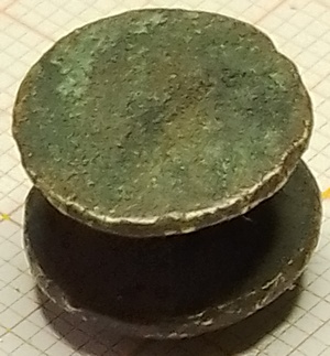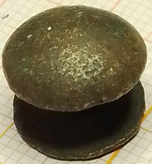 Waarschijnlijk een manchetknoop (oud type) uit de 18e of 19e eeuw. Deze vroege ontwerpen bestonden wel vaker uit twee uiteinden die permanent met elkaar verbonden waren, vaak in een “dumbbell”-vorm (haltertje). Er bestaan ook versies met een klein kettinkje er tussen.